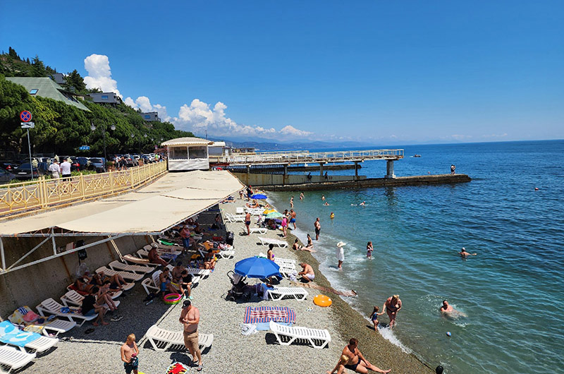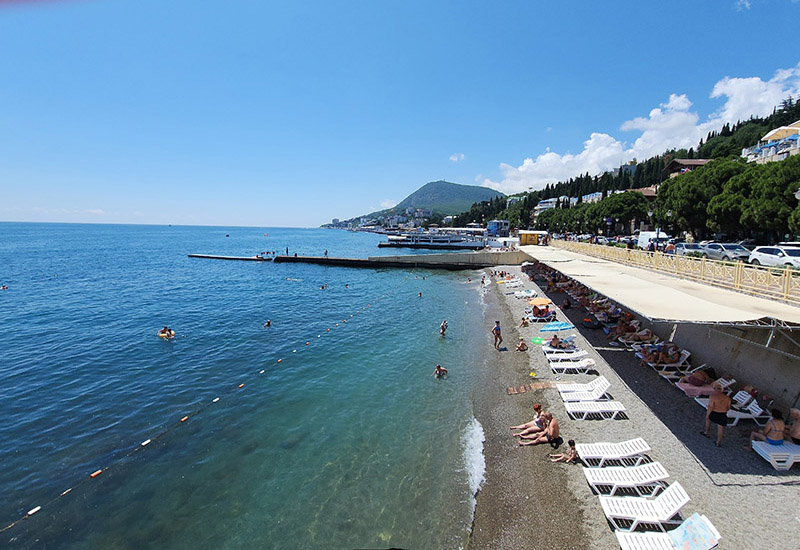Вдоль побережья на несколько километров простирается просторная набережная Профессорского уголка. Здесь есть променадная зона, где Вы сможете неспешно прогуливаться во время отдыха в Алуште 2025, любуясь красивыми морскими пейзажами. Воздух насыщен морскими солями и фитонцидами хвойных деревьев. Поэтому прогулка вдоль моря будет не только приятна, но и очень полезна для организма.